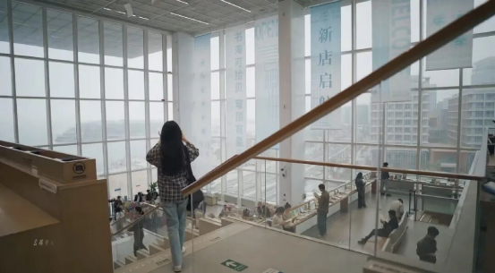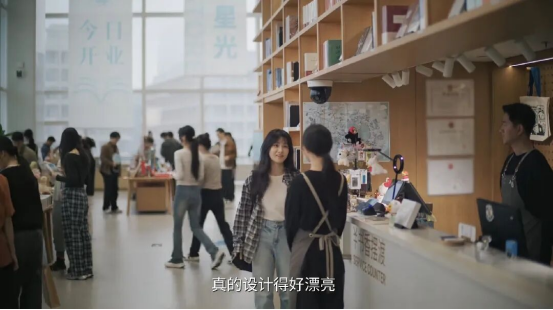 在第四集中,胡羞(卢昱晓饰)走进一座通透明亮的湖畔书店,忍不住发出赞叹:“你们书店真的设计得好漂亮~”,令女主一眼心动的“星河书屋”,原型正是位于上海临港新片区的朵云书店·滴水湖店。
