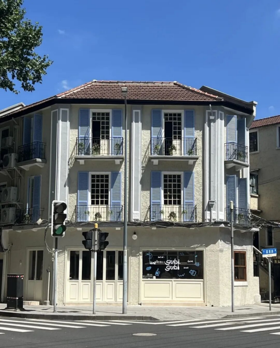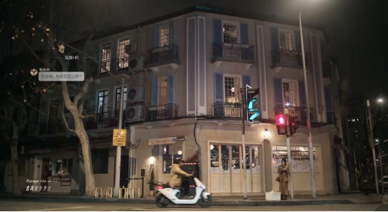 这里是胡羞(卢昱晓饰)发短信回绝筑翎offer的路口,背景是上海音乐学院附近的网红餐厅gubigubi。