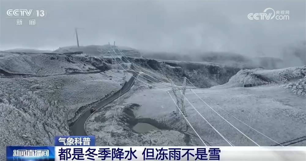 r降水形态复杂多样,是低温雨雪冰冻天气常见的特征之一,每当冻雨和雪一起出现,难免让人混淆。冻雨和雪虽然都是冬季降水,但形成过程和形态却不一样。雪是高空云层中的水汽直接凝华成的冰晶,落到地面时还是疏松的固体;但冻雨是过冷却水滴,从高空落下时温度低于0℃,一旦碰到电线、树枝、地面等物体,会立刻冻结成光滑的冰层,引起电网覆冰、道路积冰等。